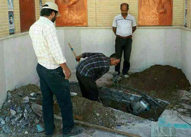 تصویر زیر صحنهای از تلاش خادمان گلزار یادمان شهدا، برای آمادهسازی مزار این شهید است.