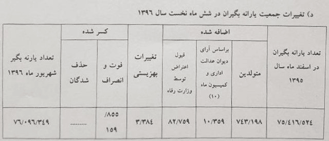 این افزایش در حالی ثبت شده که در نیمه اول امسال حدود ۷۴۳ هزار نفر متولدین جدید اضافه شدهاند. همچنین بیش از ۱۰ هزار نفر با رای دیوان عدالت اداری، بالغ بر۸۲ هزار نفر با مجوز وزارت “تعاون، کار و رفاه اجتماعی” و ۳۳۸۴ نفر از سوی بهزیستی در لیست یارانهبگیران اضافه شدهاند، در مقابل فقط ۱۵۹ هزار و ۸۵۵ نفر فوتی و انصرافی ثبت شده است.