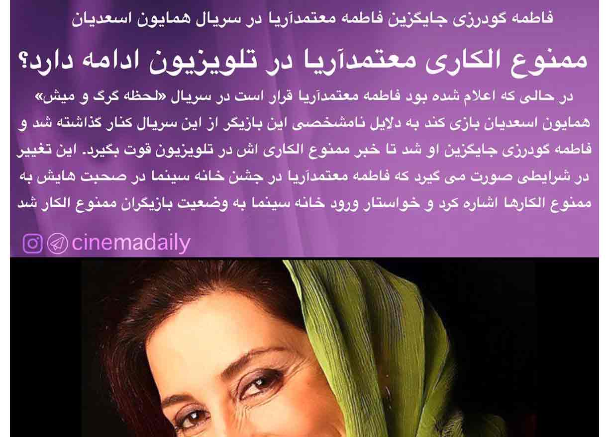 در حالی که اعلام شده بود فاطمه معتمدآریا قرار است در سریال «لحظه گرگ و میش» همایون اسعدیان بازی کند به دلایل نامشخصی این بازیگر از این سریال کنار گذاشته شد.