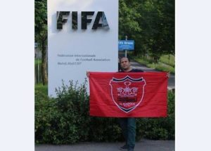 هوادار پرسپولیس،پرچم این باشگاه را در مقر فیفا به اهتزار درآورد.
