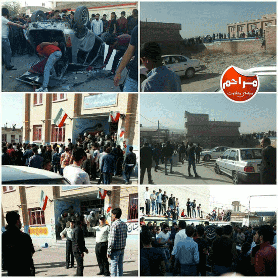 در تصاویر منتشر شده وضعیت درگیری شدید به نظر میرسد چرا که یک خودرو واژگونی شده دیده میشود که مردم در حال شکستن شیشه های آن هستند.