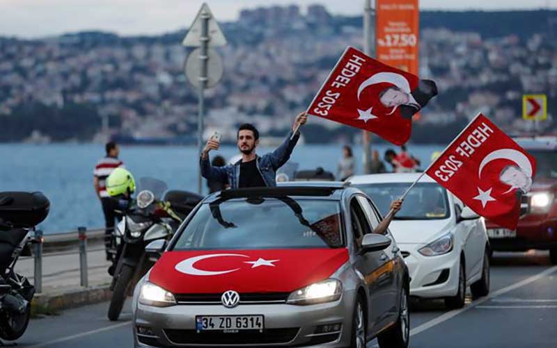 هواداران اردوغان پس از اعلام نتایج انتخابات ریاست جمهوری این کشور در خیابان های ترکیه به شادمانی پرداختند.