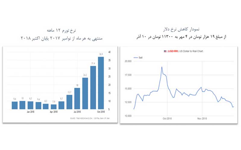 متأسفانه اکنون بحران بازار ارز ایران یازدهماهه شده است و این تحویل همراه با اجزای دیگر بسته ارزی دولت، کشور را با تورم سختتر و بالاتری روبرو میسازد؛ زیرا چون دولت نرخ بازار سوم را به رسمیت شناخته، انتظارات تورمی با بالاترین نرخ ارز شکل میگیرد(نه نرخ ۴۲۰۰ تومانی و نه نرخ نیما) و قیمت کالاها و خدمات در بازار بر این اساس بالا میروند. چون بحران بهطور غیرمعمول ماندگار شده است، قیمتهای بالا رفته کالاها و خدمات چسبندگی پیدا میکنند و اگر دولت بحران را مهار هم بکند، دیگر قیمتها پایین نمیآیند. قرینه بر صحت این سخن سیر نرخ تورم و مقایسه آن با تغییرات نرخ ارز است که در شکل ملاحظه میفرمایید. درحالیکه نرخ ارز در دو ماه اخیر روند نزولی دارد و از هر دلار ۱۹ هزار تومان در ۴ مهر با نوساناتی به ۱۱۳۰۰ تومان در ۱۰ آذر رسیده است نرخ تورم که در اردیبهشت ۹.۷ درصد بود با سیر تندی به ۹/۳۶درصد رسیده است. تازه این نرخ متوسط تورم سالانه است و تورم در آنچه مستضعفین قسمت اعظم درامد خود را صرف آنها میکنند، یعنی کالاهای غذایی با تورم ۹.۵۵ درصد همراه بوده است.