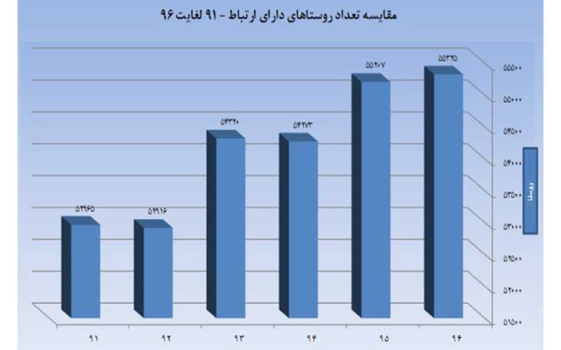 برمبنای آمار منتشر شده، در سال ۹۱ حدود ۵۲ هزار و ۹۰۰ روستا دارای ارتباط بود که در پایان سال ۹۶ این رقم به ۵۵ هزار و ۳۲۵ روستا رسیده است.
