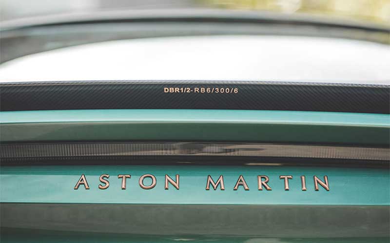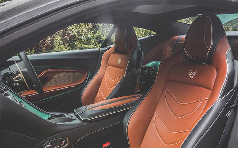 در میان تجهیزاتی که استون مارتین سوپرلجرا DBS 59 را از نسخهی معمولی متمایز میکنند، میتوان به سقف فیبر کربن، رینگهای آلیاژی ۲۱ اینچی دورنگ و مجموعهای از برچسبهای انحصاری اشاره کرد. اطراف جلوپنجره، نشانها، کالیپرهای ترمز و اهرم تعویض دنده کنار فرمان همگی با برنز روشن تزئین شدهاند. البته این فقط ابتدای کار است و استون مارتین هنوز موارد دیگری برای نسخه سفارشی سوپرلجرا دارد.