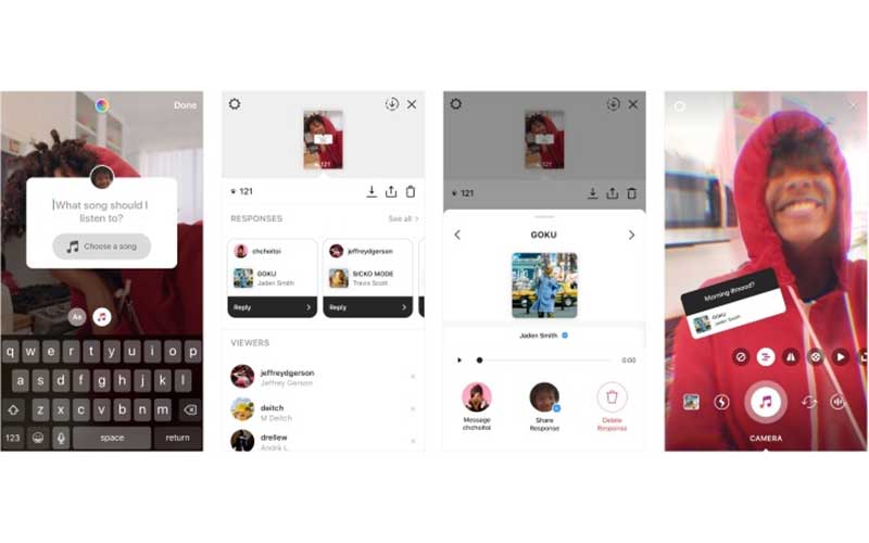 استیکر مربوط به سوالات بخش استوری شبکهی اجتماعی Instagram، از این پس کاربردیتر شده و افراد میتوانند با موسیقی به سوالات پاسخ دهند. با ضربه زدن روی پاسخ یکی از بینندگان، آهنگ بهاشتراکگذاشتهشده توسط وی پخش میشود و کاربران میتوانند بنابه سلیقهی خود با یک پیام به آن پاسخ دهند یا اینکه آن موسیقی را در استوری خود بهاشتراک بگذارند.