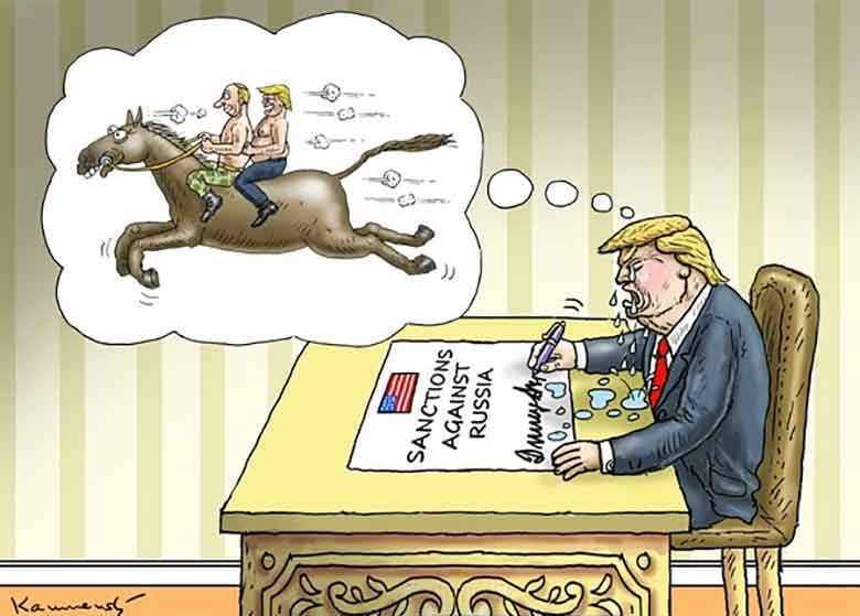 در حاشیه تحریمهای جدید امریکا علیه روسیه، سایت کگل این کارتون را منتشر کرد.
