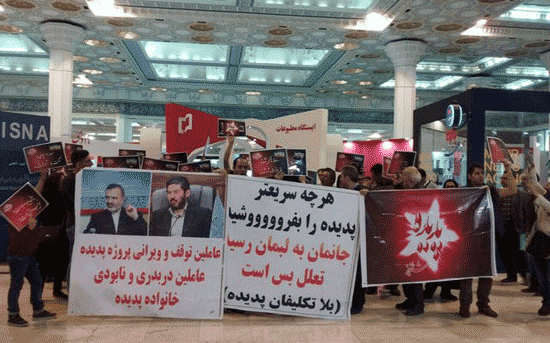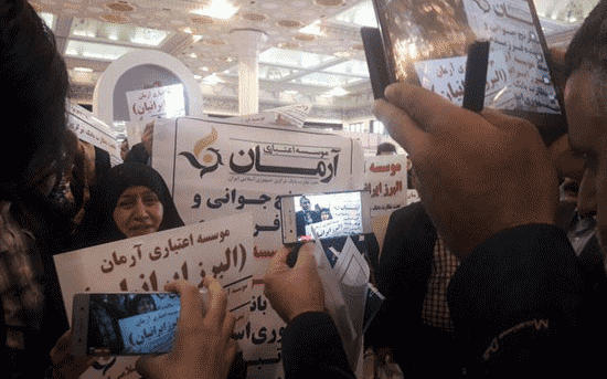 پیش از ظهر جمعه ـ ۱۲ آبان ماه ـ تعداد زیادی از سپرده‌گذاران معترض موسسات مالی و اعتباری که این بار به صورت گروهی در نمایشگاه مطبوعات حضور یافته بودند، به غرفه‌های مختلف رفتند و مطالباتشان را با صدای بلند مطرح کردند.