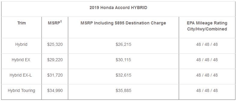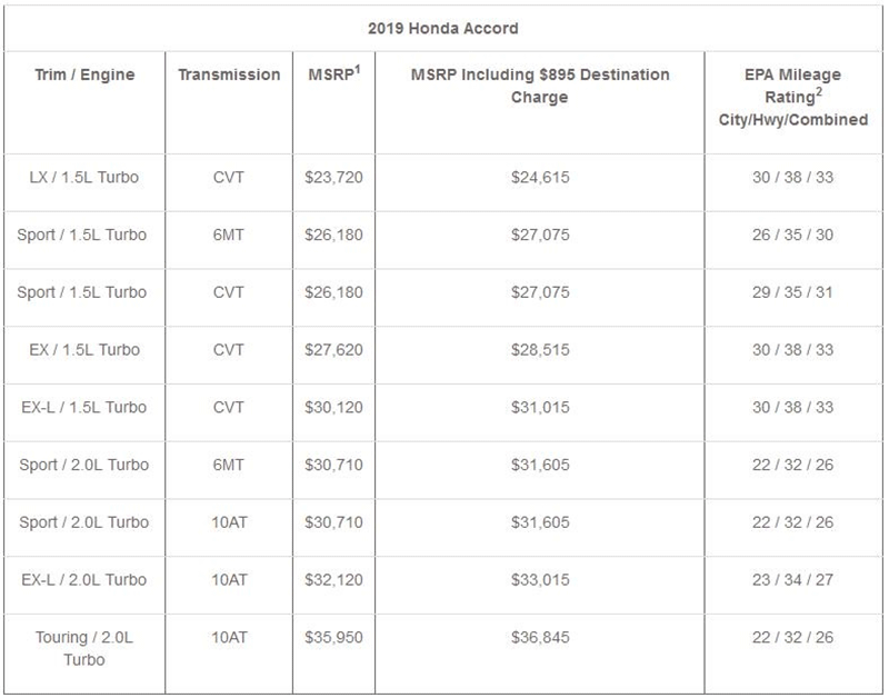 هوندا آکورد ۲۰۱۹ از اول نوامبر وارد نمایندگیهای فروش میشود و مدل پایهی آن قیمت ۲۳۷۲۰ دلاری خواهد داشت.