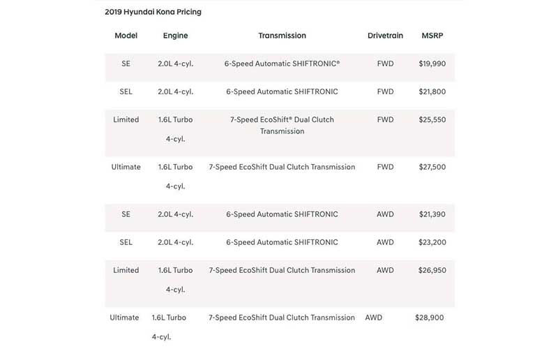 هیوندای کُنا به دومین سال حضور خود در آمریکا وارد میشود و قیمت مدل سال ۲۰۱۹ این خودرو کمی افزایش یافته است.