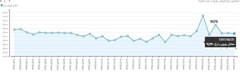 گفتنی است، با وجود کاهش شدید عرضه، قیمت در این بازار تغییر چندانی نداشته است و همچنان میانگین نرخ یورویی عرضه ارز در کانال ۹۱۰۰ تومان قرار دارد.