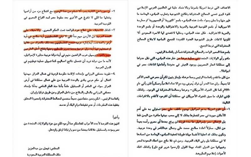 به گزارش فارس، روزنامه الشرق مصر با انتشار این اسناد آورده است که طبق مکاتبات بین و کاخ سفید در تاریخ ۲۷ دسامبر ۱۹۶۶ به صراحت از اسرائیل خواسته شده است تا سیناء را اشغال کند و این مربوط به دوره تنش بین قاهره و ریاض است و عجیب‌تر اینکه عربستان برای تقویت ارکان رژیم صهیونیستی تلاش کرده و پیشنهاد حمله به سوریه و جداسازی بخشی از آن (جولان) را پیشنهاد کرده است.
