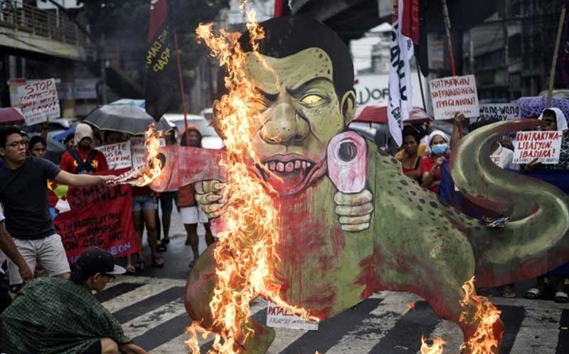 تظاهرات فعالان حقوق بشر در فیلیپین علیه دورته. ( ای اف پی)