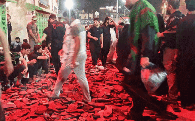 انباشته شدن دمپایی های زائران اربعین
