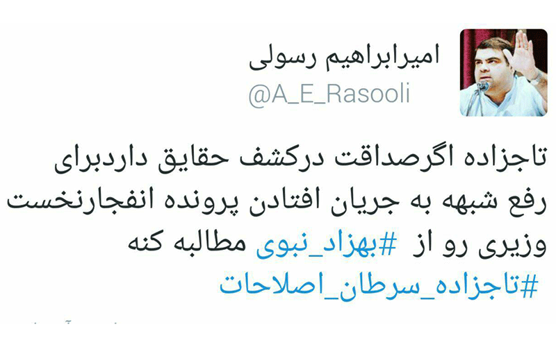 امیر ابراهیم رسولی فعال رسانهای در توییتی خطاب به مصطفی تاجزاده نوشت: