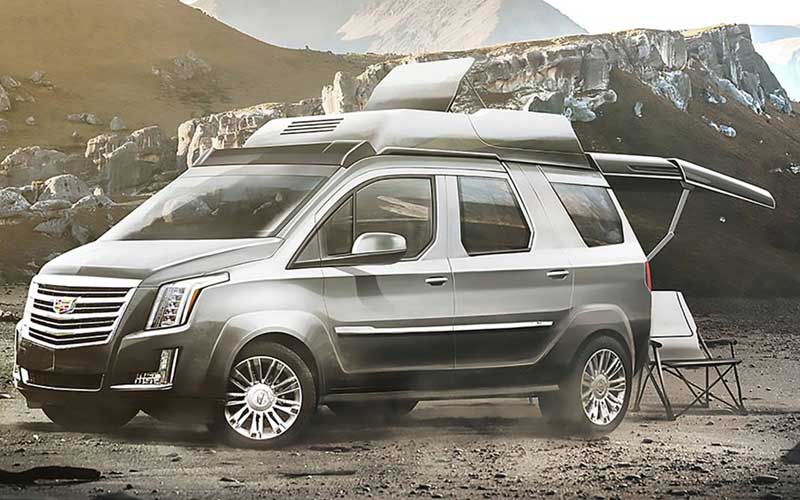 این برند آمریکایی زمانی به تولید کمپر ون مشغول بوده از همین رو رندر فوق بسیار به واقعیت نزدیک است.ظاهر فربه به همراه چراغها و جلو پنجره مخصوص کادیلاک شیک و جذاب جلو می کند. همچنین به نظر میر سد که سیستم تهویه خوبی برای این کمپر ون در نظر گرفته شده است.