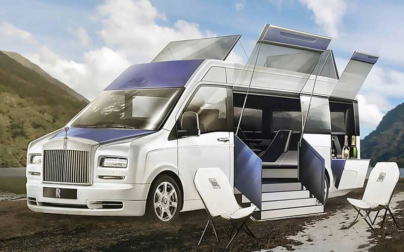 رولز رویس بعنوان لوکس ترین خودروساز جهان یا وارد مقوله ای نمی شود و یا اگر بشود به نحو احسند آن کار را انجام می دهد. در نتیجه اگر این برند روزی کمپر ون بسازد با بهترین آن روبرو خواهیم شد.کمپر ون فوق در نمای جلو با جلوپنجره و چراغهای سنتی رولز رویس شکل داده شده و دربهای کناری بزرگ با اشرافیت کامل باز شده و به کف زمین کشیده میشوند.