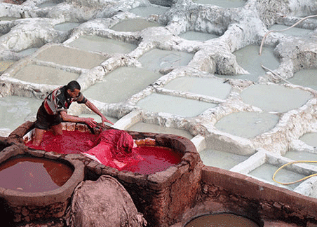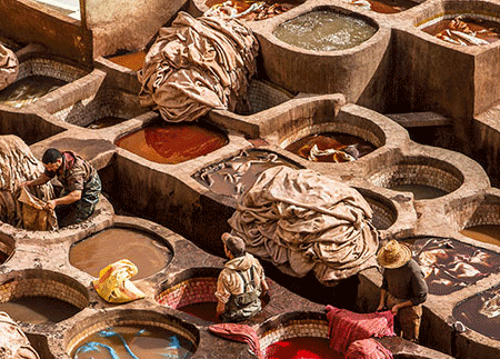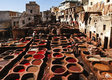 حوضچههای رنگرزی چرم در شهر فاس مراکش به قدری بدبو هستند که تحمل کردن آن برای هر کسی امکانپذیر نیست. این بو بخشهای زیادی از این قسمت شهر را تحت تأثیر خود قرار داده است.