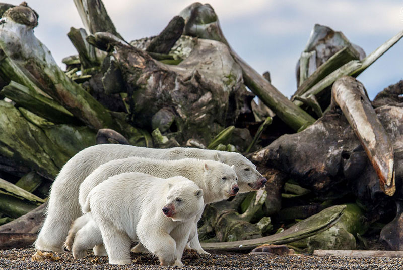 سه خرس قطبی در امتداد ساحل جزیره بارتر در شمال آلاسکا/ عکس از Daniel Dietrich