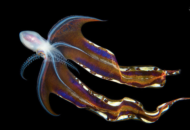 یک اختاپوس که نرهای آن ۱۵ میلیمتر و ماده ها تا دو متر رشد می کنند/ عکس از Jinggong Zhang
