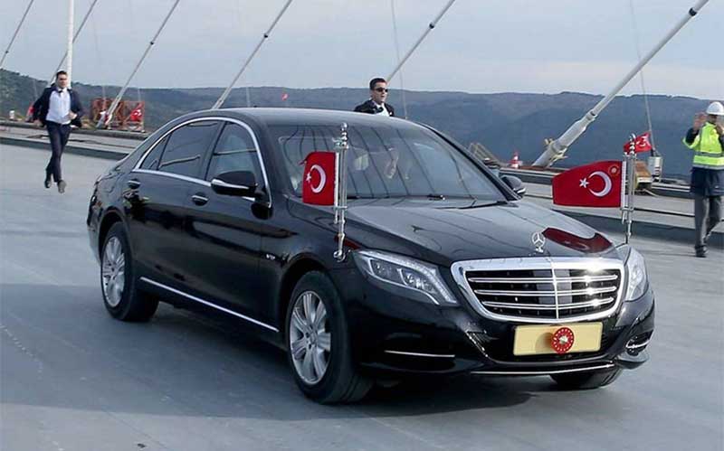 دوازدهمین رئیس جمهور ترکیه، مرسدس بنز S600 مجهز به پوشش مخصوص تیتانیومی، درهای مقاوم در برابر گلولههای مسلسل سبک با ضخامت ۱۳ سانتیمتر، کابین کاملاً عایق و ایزوله جهت محافظت سرنشین در برابر حملات شیمیایی، تلفن ویژه و متصل به ماهوارهی گوکترک یک و تایرهای مخصوص برای حرکت در شرایط سخت را انتخاب کرده است. تغییرات انجام شده برای خودروی اردوغان، ۱۵۰ هزار یورو (حدود ۱۷۳ هزار دلار) هزینه داشته است.