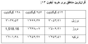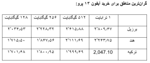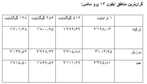 در ادامه گرانترین قیمت آیفون ۱۳ در کشورهای مختلف را آوردهایم، قیمتهای نوشتهشده به دلار آمریکا تبدیلشدهاند: