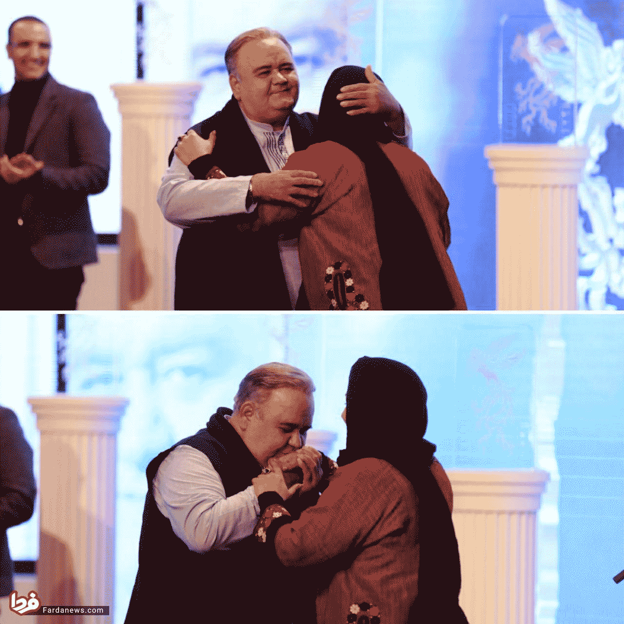 بوسه اکبر عبدى بر دستان همسرش در افتتاحیه جشنواره فیلم فجر را مشاهده می کنید