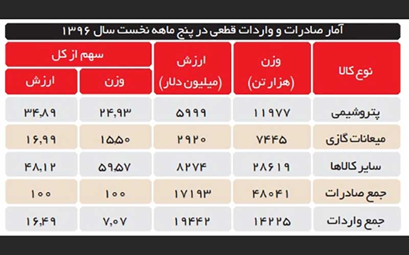 یکی، دو سالی است از اینکه رقم صادرات غیرنفتی کشور به ارقام وارداتی نزدیک شده؛ خبر نقل شده و بر کمشدن و گاه بر مثبتشدن تراز تجاری کشور تأکید میشود. اما این رقمها که به عنوان ارقام کالاهای صادرشده غیرنفتی در جداول گمرک ثبت میشود؛ بوی نفت میدهد و بیش از ۵۰ درصد از میزان آن میعانات گازی و پتروشیمی است.