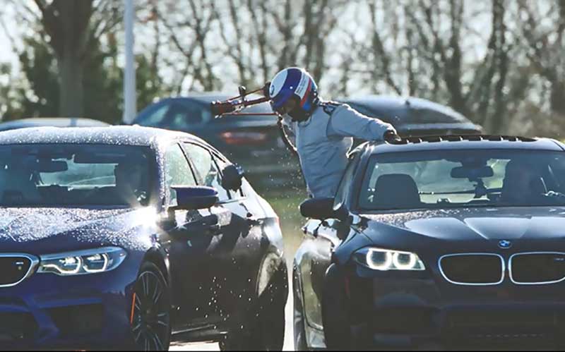 با هدف سوخترسانی به M5 اصلی، نمونهای دیگری از این خودرو حضور داشت که از نسل قبل و مدل ۲۰۱۶ بود. رانندهی خودروی سوخترسان، مت مولینز هم، نقش مهمی در رکوردگیری داشت و با دریفت هماهنگ، توانست ۵ سوختگیری موفق را، ممکن کند. شاید با دیدن چنین صحنههایی، فیلمهای هالیوودی نظیر سریع و خشن تداعی شوند، اما در عمل توسط تیم بیامو به حقیقت پیوست. خودروهای دریفتکننده، حین یکی از سوختگیریها، توانستند در مسیری به طول ۶۳ کیلومتر، به صورت کاملا هماهنگ و کنار یکدیگر قرار گیرند.