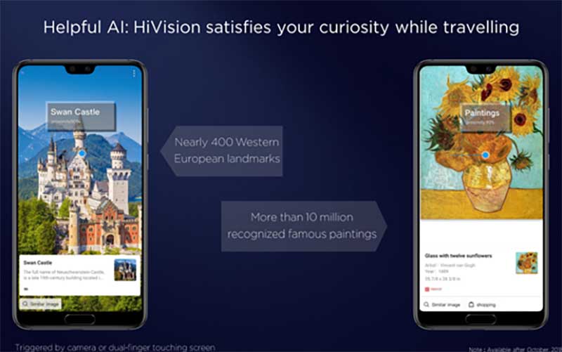 یکی دیگر از ویژگی های مهم EMUI 9.0 قابلیت HiVision است، که دوربین را قادر می سازد تا مکان های مشهور و حتی نقاشی های معروف را با هوش مصنوعی شناسایی کند. در این رابط کاربری پیشرفته، کاربر به سادگی با حرکت دوربین گوشی به سمت سوژه مورد علاقه خود، اطلاعات مختلفی از آن را دریافت می کند. EMUI 9.0 دارای یک سیستم امنیتی جدید نیز هست که در آن کاربران می توانند رمز عبور خود را با تشخیص چهره یا اثر انگشت برای سرویس های مختلف ذخیره کرده و هر زمان که به آنها نیاز دارند، از آن بهره گیری نمایند.