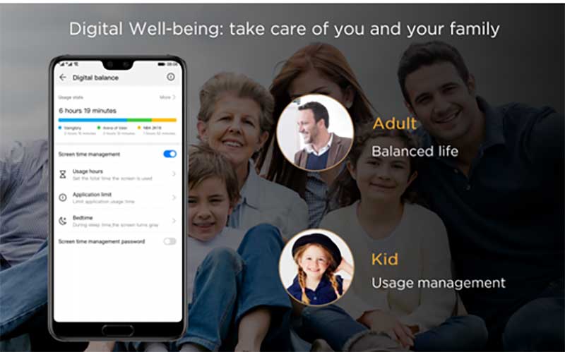 رابط کاربری اختصاصی جدید هوآوی دارای یک داشبورد دیجیتال جدید به نام Digital Balance است که میزان سنجش استفاده دستگاه را دنبال می کند و کاربران را قادر می سازد سهمیه ای مشخص برای استفاده از هر برنامه را تعیین کنند. همچنین برنامه Wind Down به کاربران کمک می کند تا قبل از خواب آرامش بیشتری داشته باشند.