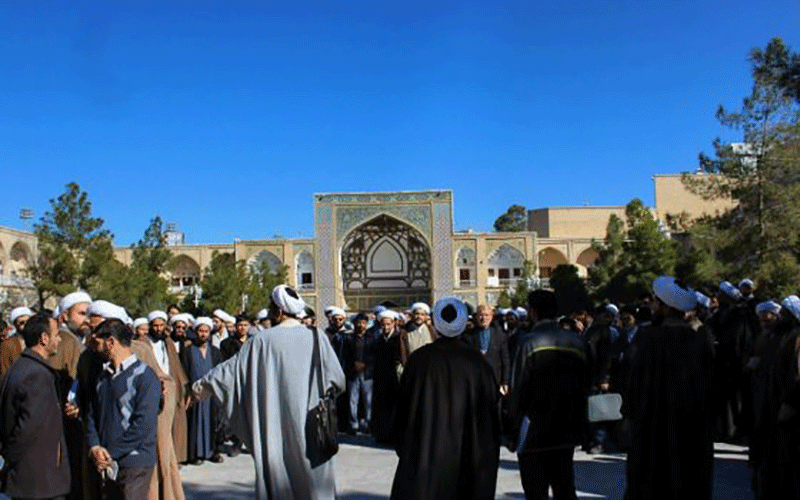 تجمع اعتراضی برخی طلاب حوزه علمیه قم در فیضیه، بر ضد پیوستن ایران به FATF
