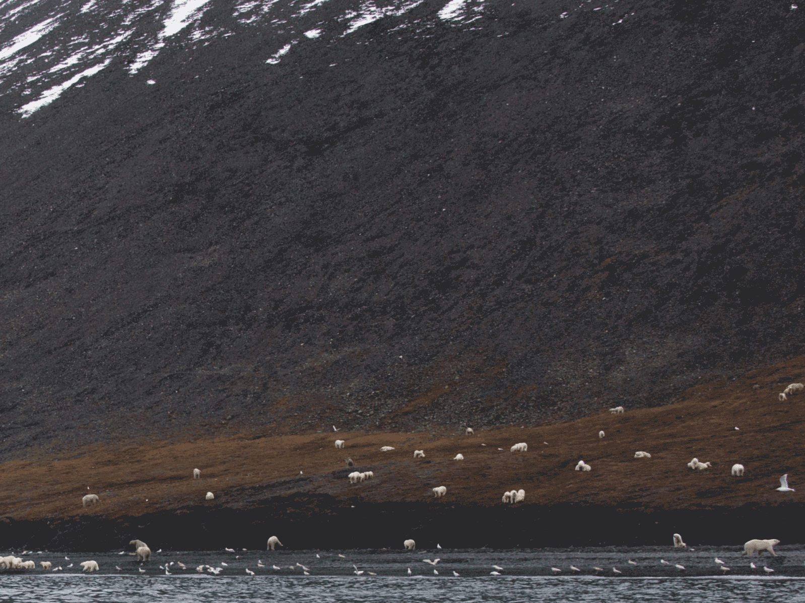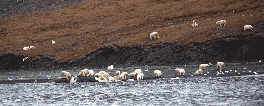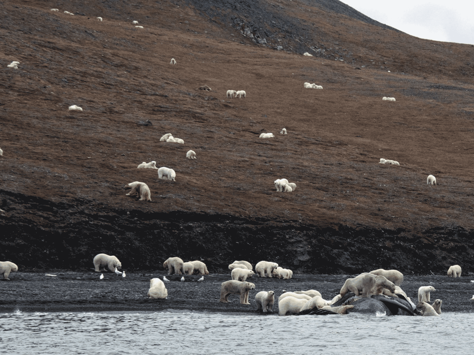 به گفته کارشناسان حدود ۲۰۰ قلاده خرس قطبی برای خوردن لاشه یک نهنگ در ساحل این جزیره نزدیک به قطب شمال جمه شده بودند.