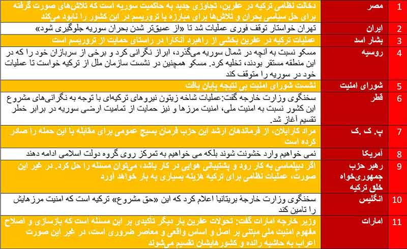 عملیاتی ضربتی که دامنه واکنش ها به آن حتی به شورای امنیت سازمان ملل هم رسیده است . برخی می گویند ایران و روسیه به ترک ها چراغ سبز نشان داده اند اما هم ایران و روسیه به صورت رسمی اعلام کرده اند که نگران اند و مخالف.