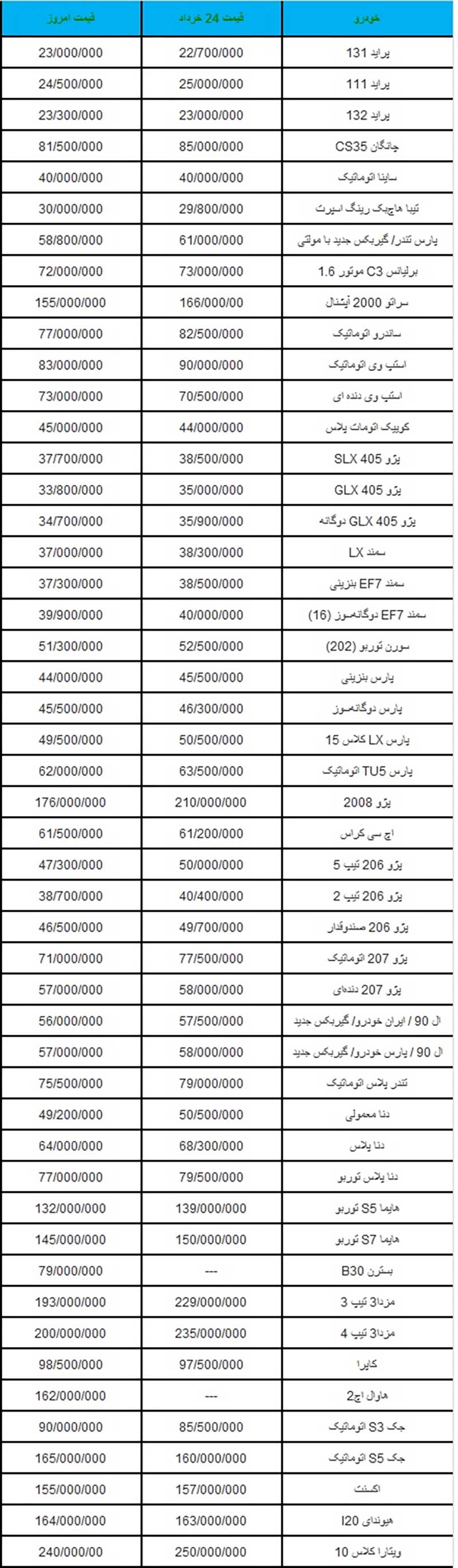 استعلام قیمت خودروهای داخلی از بازار تهران و کرج امروز پنجشنبه ۳۱ خرداد ماه: