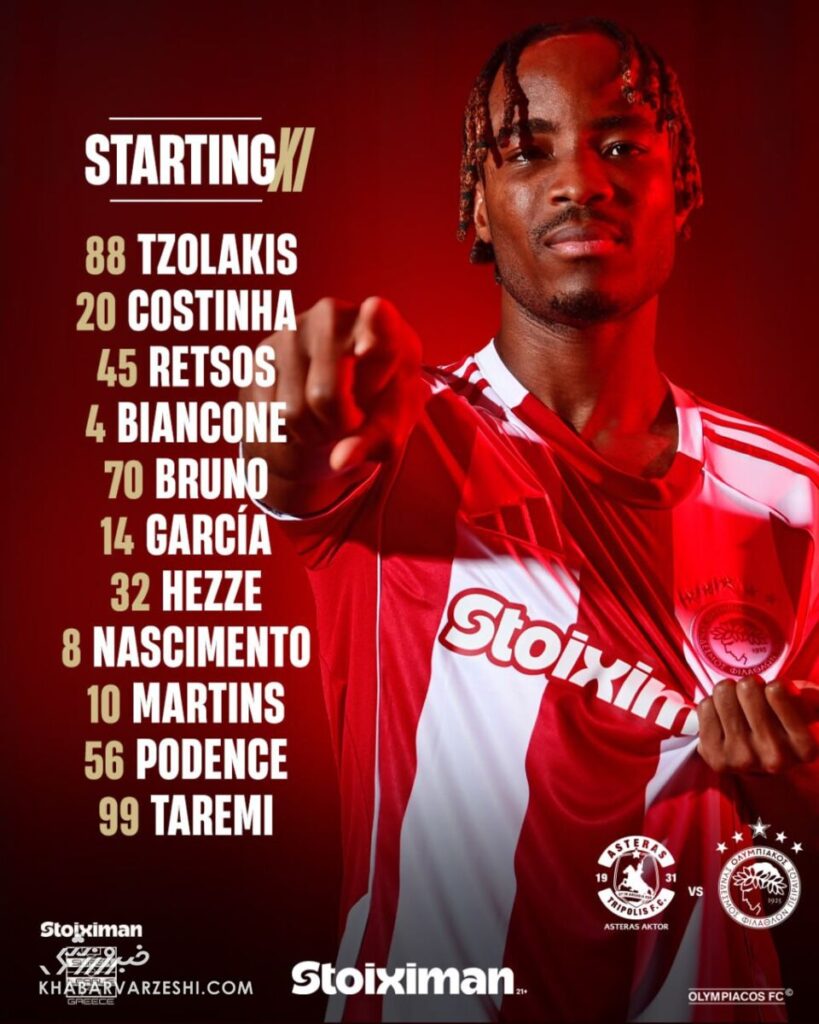المپیاکوس از ساعت ۲۰ امشب (به وقت ایران) در استادیوم تئودوروس کولوکوترونیس میهمان تیم رده سیزدهمی آستراس است و طارمی پس از گل حیاتی از روی نقطه پنالتی در هفته گذشته مقابل آ. ا.ک آتن، با انگیزهای بالا در ترکیب اصلی حضور دارد.