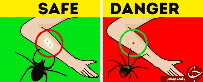 در مورد نیش زده شدن توسط یک عنکبوت یا حشره معمولی نگرانی خاصی وجود ندارد مگر این که آلرژی خاصی داشته باشید. اما داستان در مورد یک عنکبوت سمی کاملاً متفاوت است. واکنش های آلرژیک به عنکبوت های سمی بسیار خطرناک می تواند باشد. برای مثال نیش عنکبوت بیوه سیاه می تواند به سرعت درد را در نقطه گزش ایجاد کند که به سرعت به نقاط دیگر بدن مانند سینه و شکم منتقل می شود. با ردی که از جای گزش عنکبوت های سمی به جا می ماند می توان سمی بودن یا نبودن گزش را به راحتی مشخص کرد. برای مثال یک نقطه سیاه یا قرمز روی پوست با حلقه هایی در اطراف آن که شبیه ساعت شنی است علامت گزیده شدن توسط عنکبوت بیوه سیاه خواهد بود.