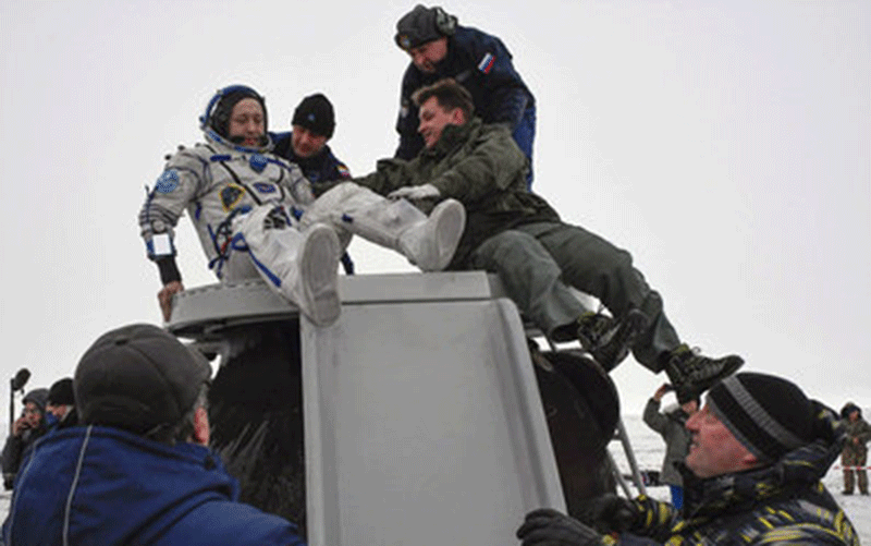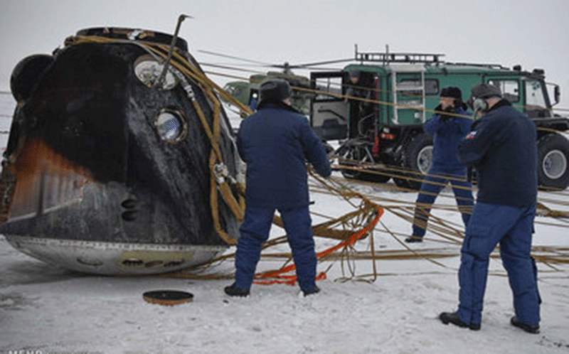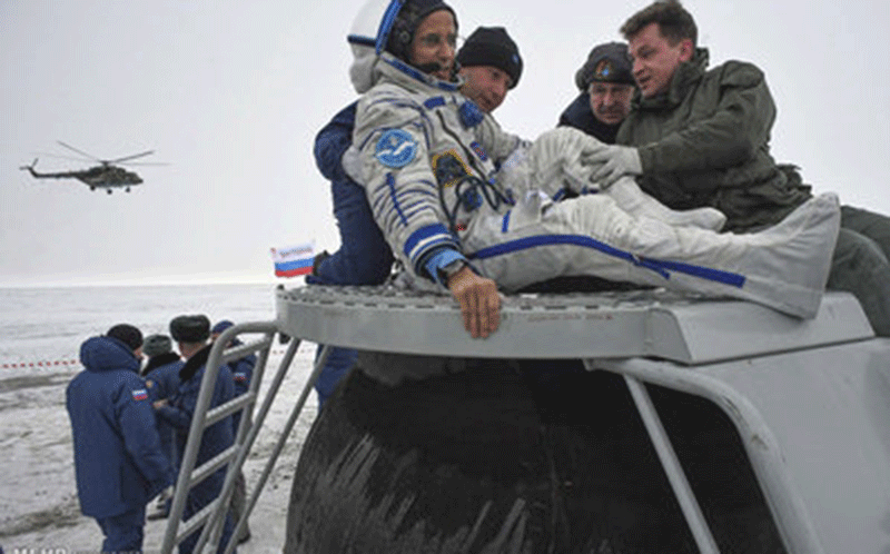 دو فضا نورد آمریکایی و یک فضانورد روس پس از ماموریتی ۵.۵ ماهه در ایستگاه فضایی بین المللی به زمین بازگشتند و کپسول حامل آنها در قزاقستان به زمین نشست.