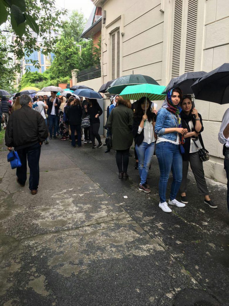 صف رای ایرانیان زیر باران در میلان ایتالیا