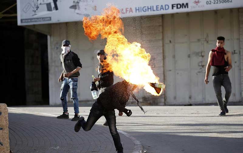 پرتاب کوکتل مولوتف توسط جوانان فلسطینی
