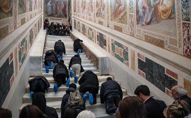 روش متفاوت مسیحیان کاتولیک هنگام ورود به یک کلیسا در رم ایتالیا