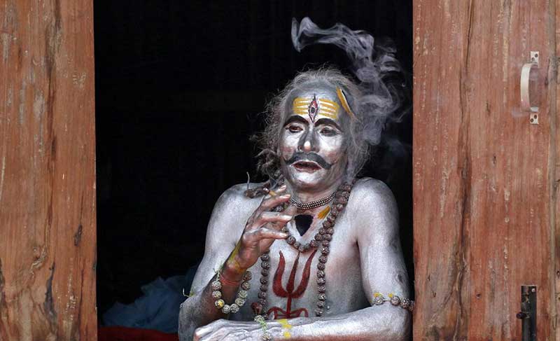 مرد هندوی مقدس در حال سیگار کشیدن در حمه اگارتالای هند