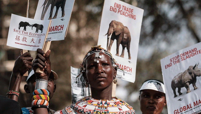 ۲۶ فروردین ماهاعتراض یک زن قبیله ای نسبت به شکار حیوانات در معرض انقراض در نایروبی کنیا