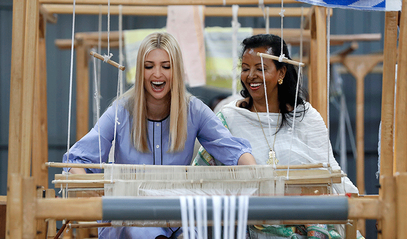 ایوانکا ترامپ پشت دستگاه سنتی پارچه بافی در اتیوپی