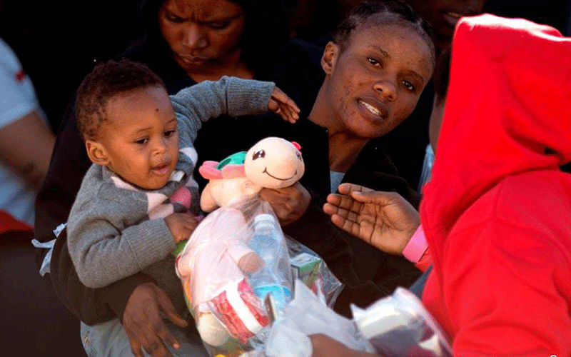 یک زن و کودکش پس از نجات از قایق مهاجران در مالاگا اسپانیا