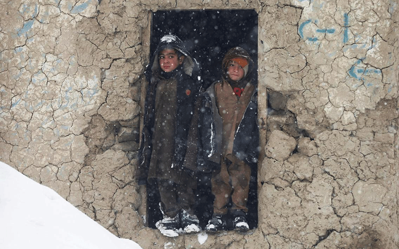 دو کودک افغان در هوای برفی کابل