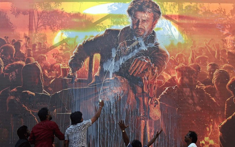 پاشیدن شیر روی پوستر یک فیلم سینمای بالیوود در چنای هند