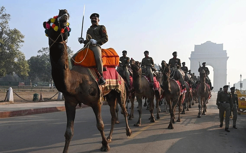 نیروهای امنیتی شترسوار هند در دهلی نو