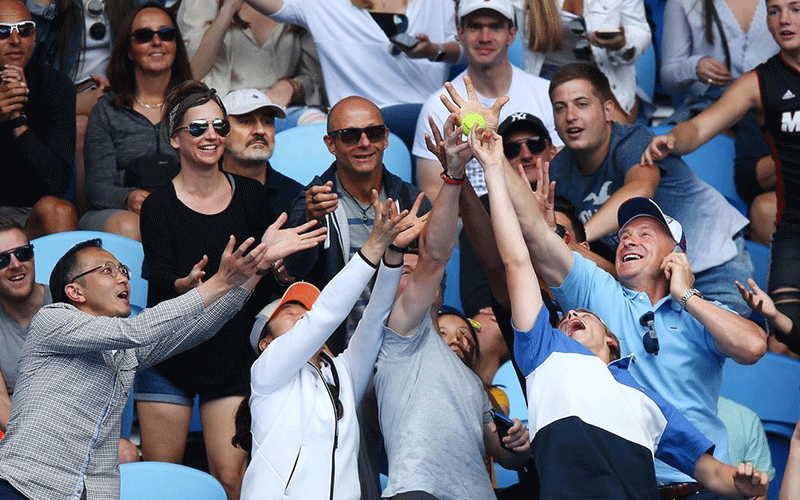 تلاش تماشاگران برای گرفتن توپ پرتاب شده توسط نواک جوکوویچ