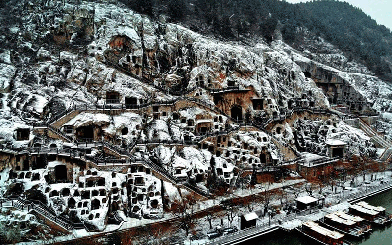 غارهای پوشیده از برف در استان هنان چین